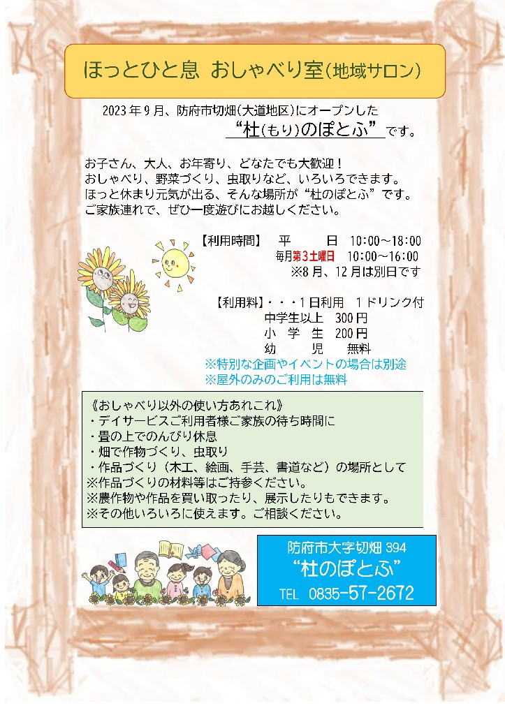 放課後等デイサービス・通所介護・地域サロン|杜のぽとふ